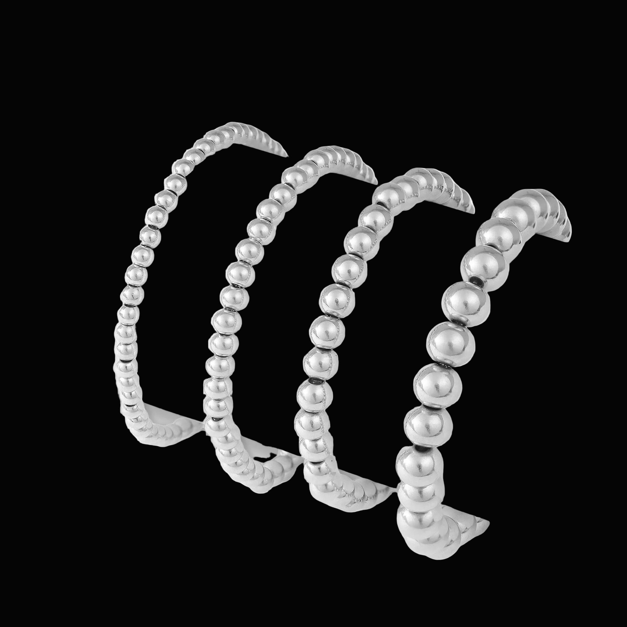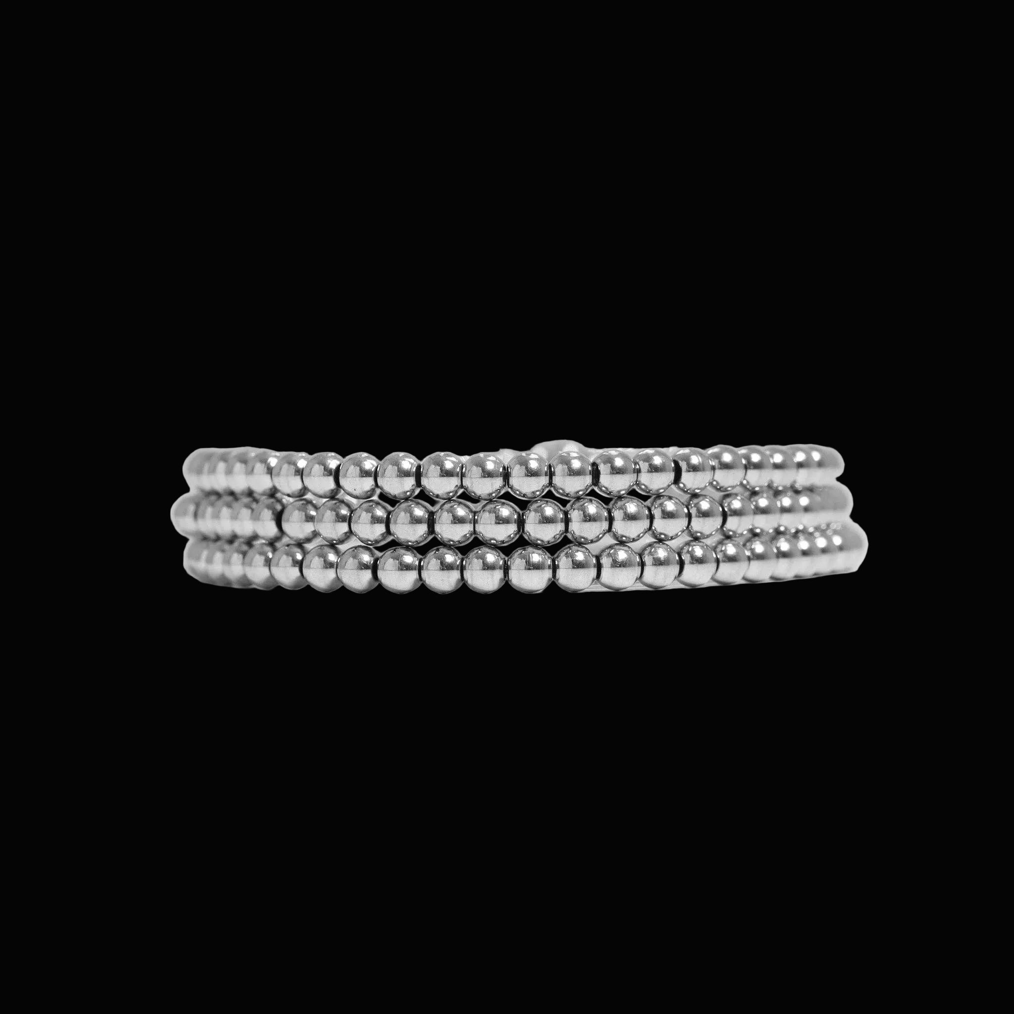 This 5mm stainless steel bead bracelet delivers real weight with an easy stretch fit designed for everyday wear. Finished in solid stainless steel or 18K Gold PVD, it holds its shape, keeps its shine, and wears comfortably on its own or stacked with chains and cuffs. Waterproof, hypoallergenic, and made from 316L surgical-grade stainless steel, this is a no-nonsense staple built for repeat wear.