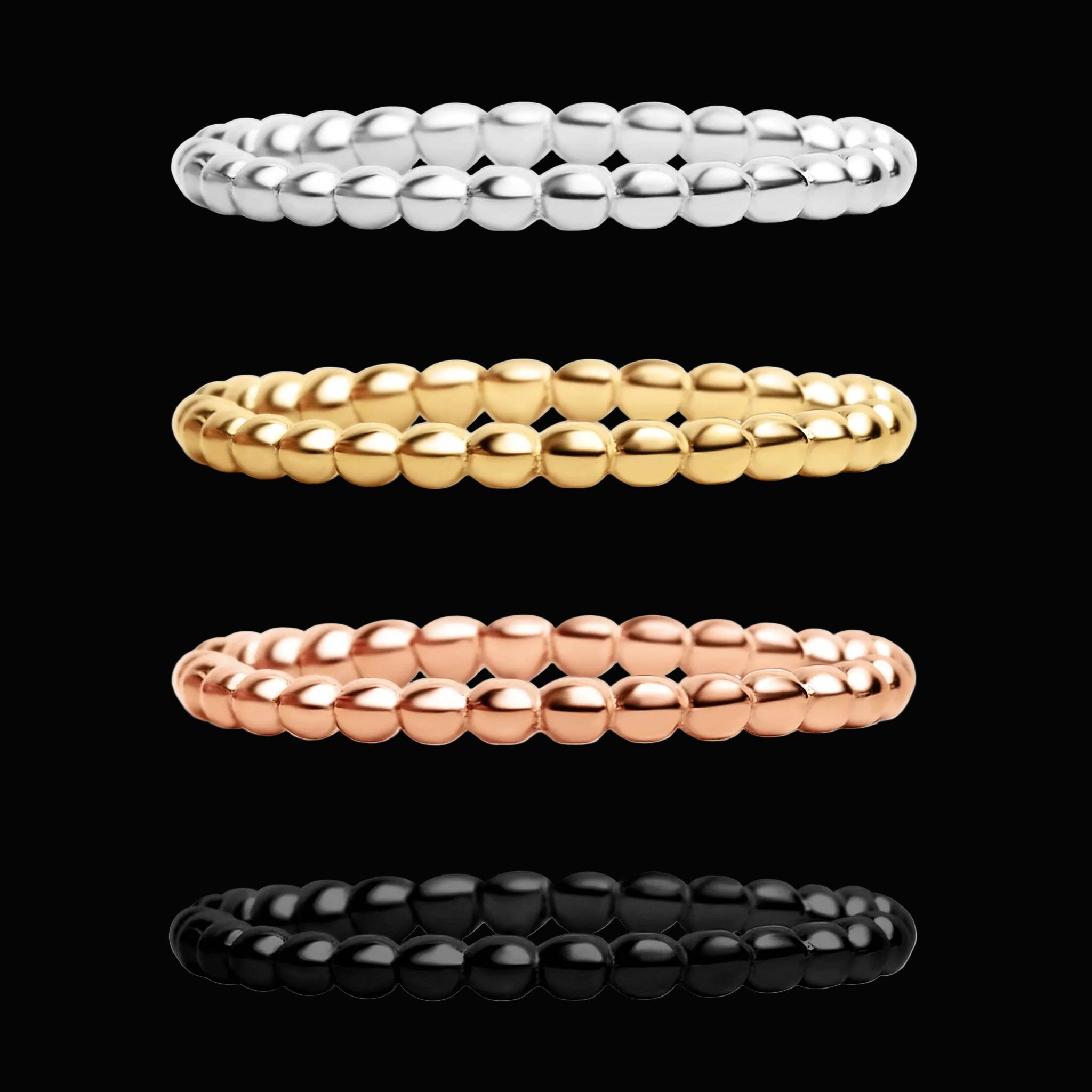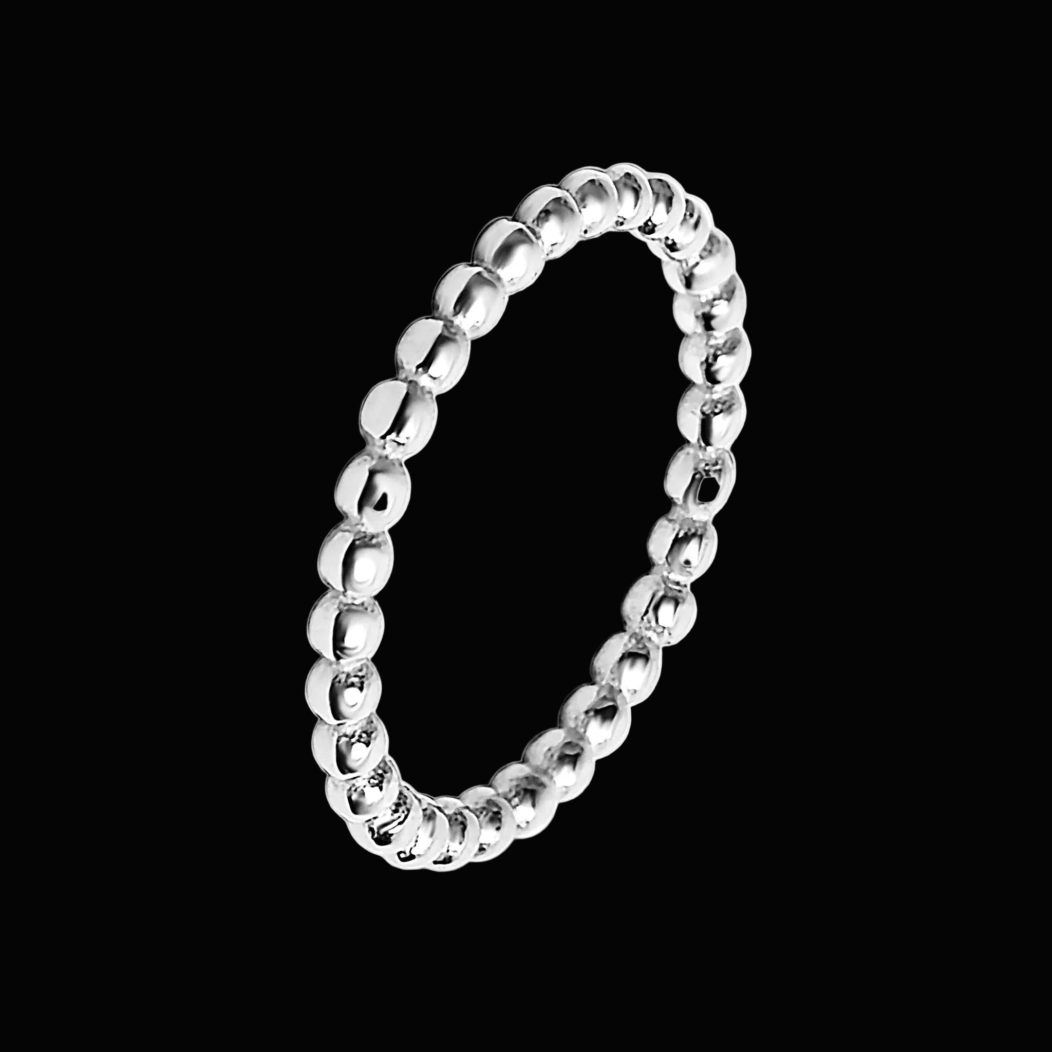 A tight, all-metal beaded band in solid stainless steel, built to wear every damn day without fuss. Clean on its own, brutal stacked, and durable enough to disappear into your rotation without babysitting. No shine chasing. No filler stones. Just weight, texture, and grit.
