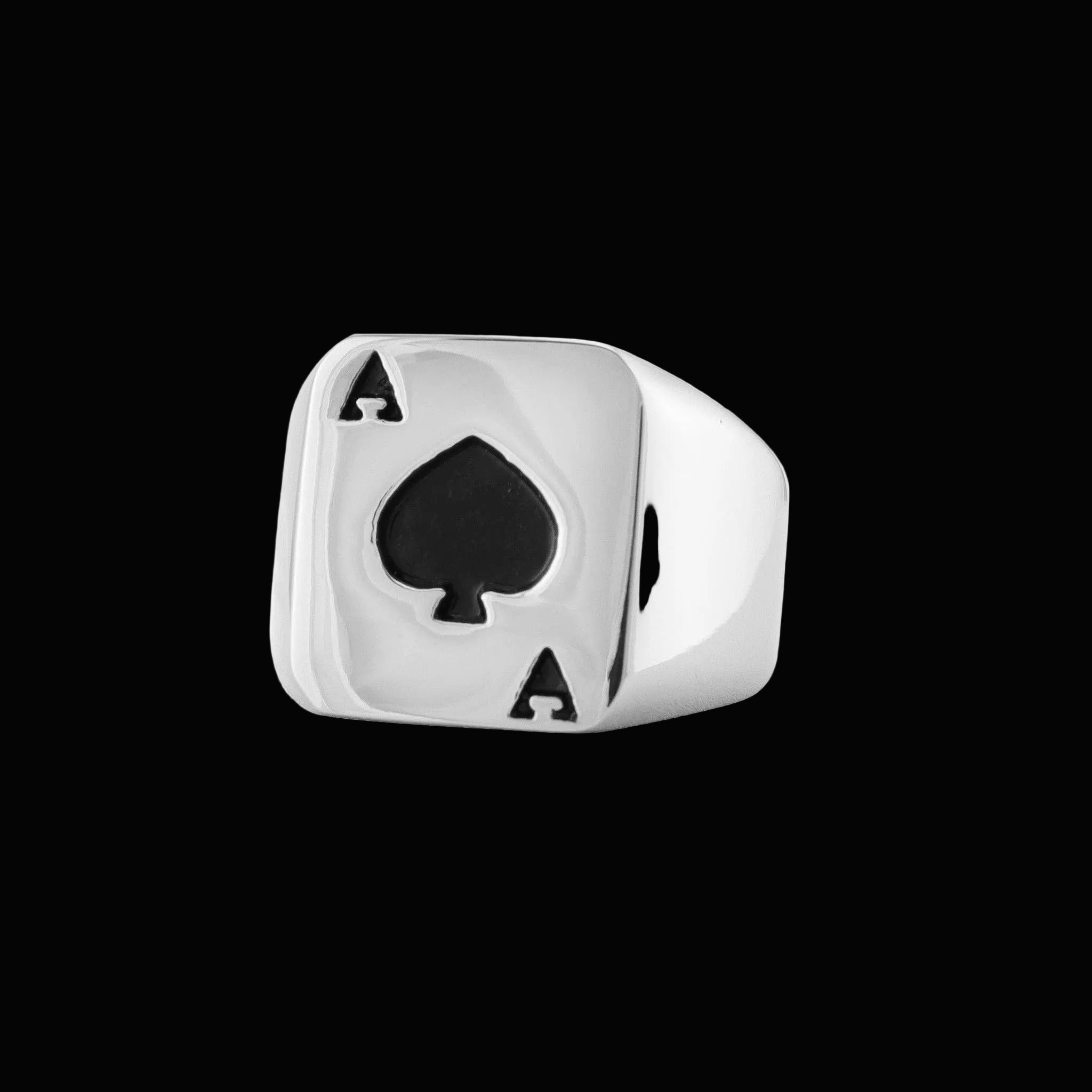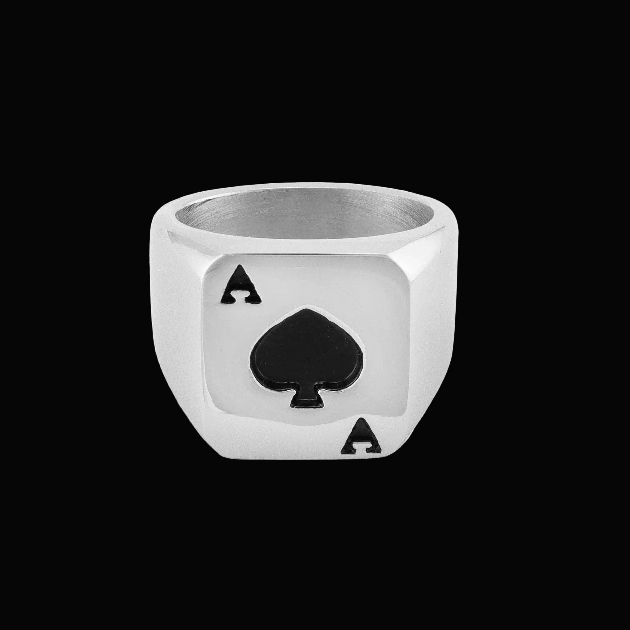 House Edge is a polished stainless steel signet ring stamped with a bold black ace of spades—clean, heavy, and unapologetic. Built with a solid face and smooth weight, this ring is made for nights that start at the bar and end wherever the cards fall. No gimmicks. No luck talk. Just a reminder that the house always has an edge—and sometimes, so do you.