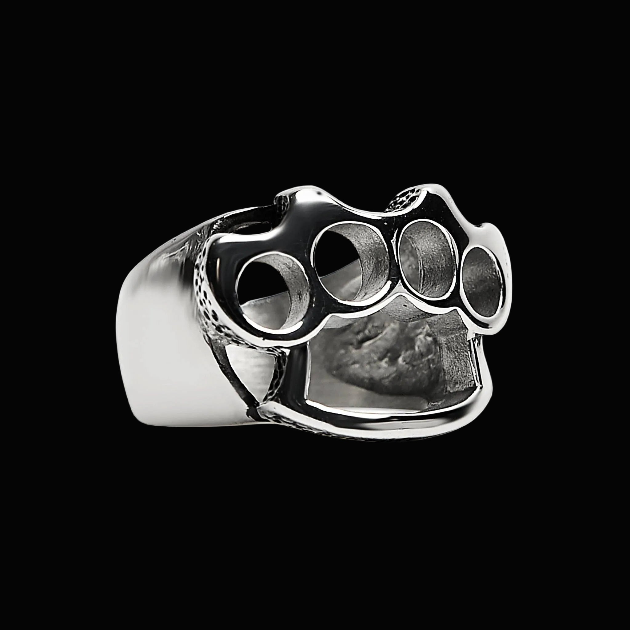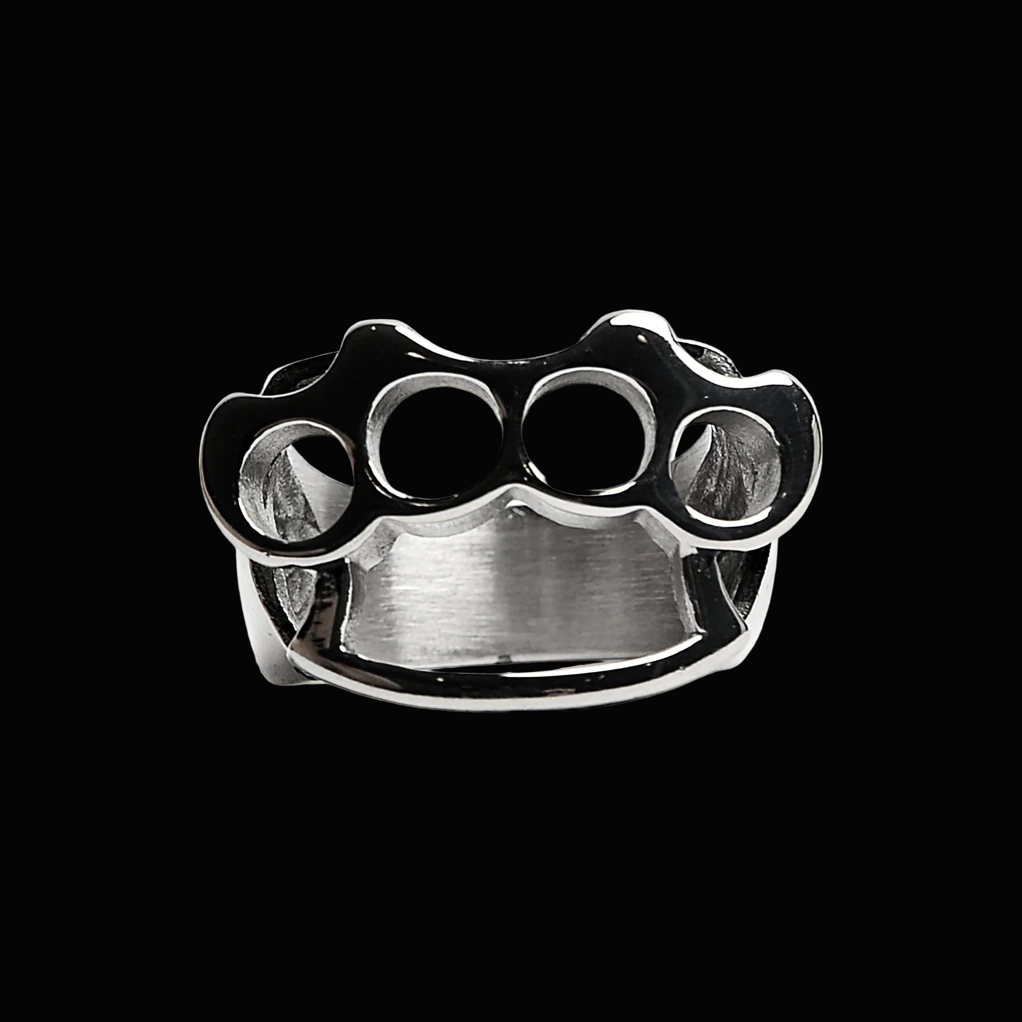 Polished steel. Four-hole grip. Knuckle duster face cut clean in solid stainless. Compact. Intentional.